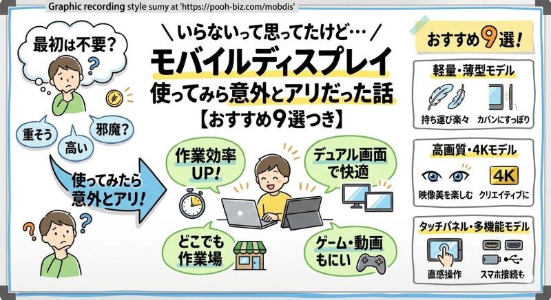 この記事では、そんな「モバイルディスプレイ不要派」だった僕が、実際に使ってみて感じたことを本音で語りつつ、「こういう人には本当におすすめ!」と思える製品を9つ紹介します。